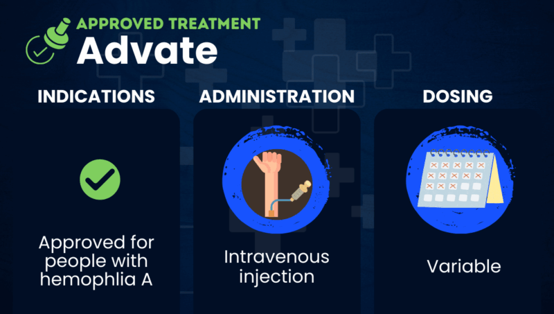 In the U.S., Advate is approved for children and adults with hemophilia A. It has three main indications: